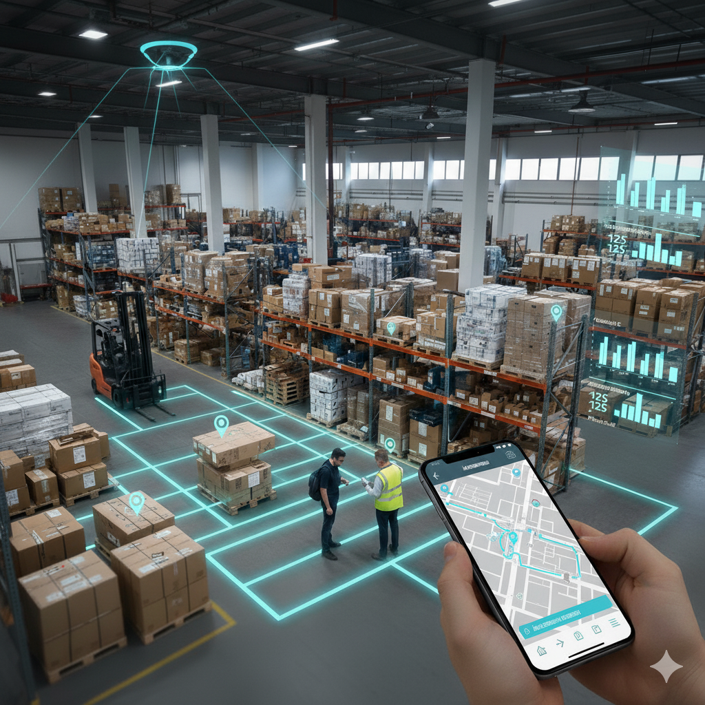 Riduzione dei tempi di ricerca di utensili, mezzi o dispositivi. Ogni tag BLE identifica univocamente l’attrezzatura e ne mostra la posizione su mappa. - Gestione automatica del magazzino